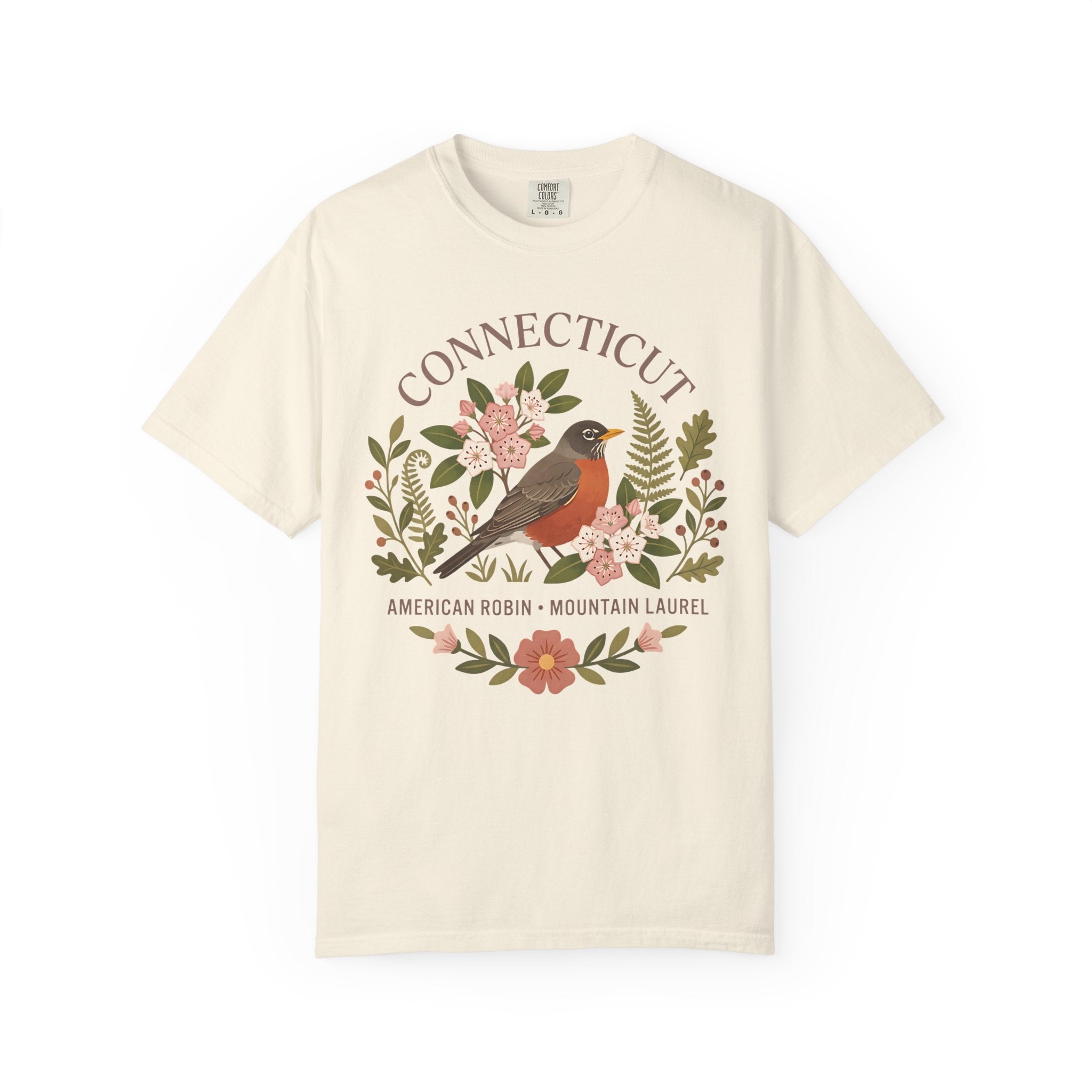 Connecticut State Bird and Flower Graphic T-shirt